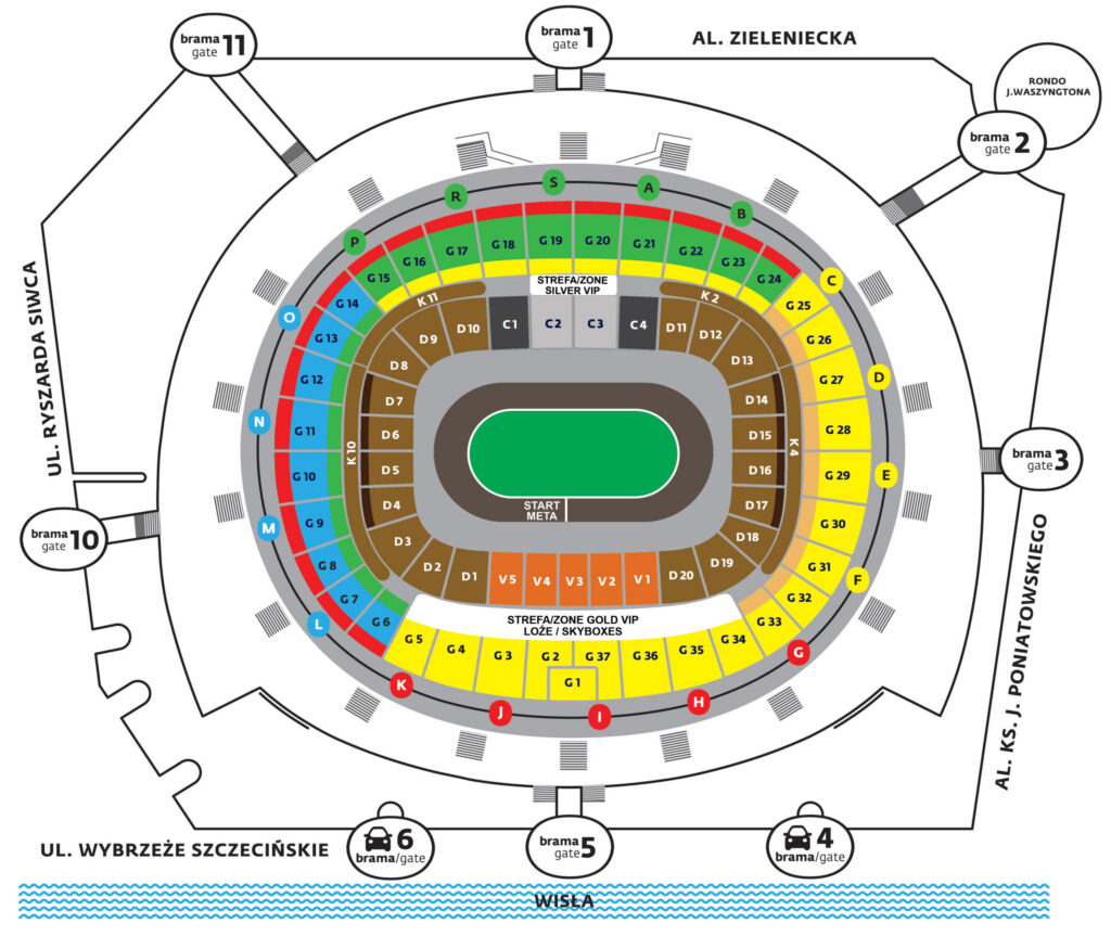 Cena biletu PREMIUM zawiera: miejsce w sektorach C1 i C4 (na prostej przeciwległej do startu), darmowy program (voucher) do odbioru w infopunkcie na PGE Narodowym. Miejsce nie obejmuje w cenie cateringu.